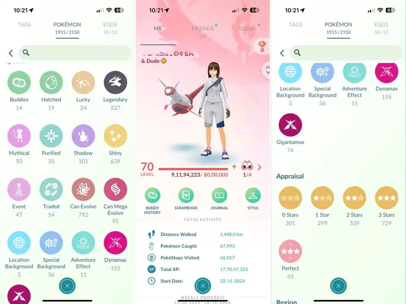 155 DYNAMAX 🔥 LEVEL 70 💎 639 SHINY | 527 LEGENDARY | FRANCE LOCATION BG | SHINY GMAX LAPRAS