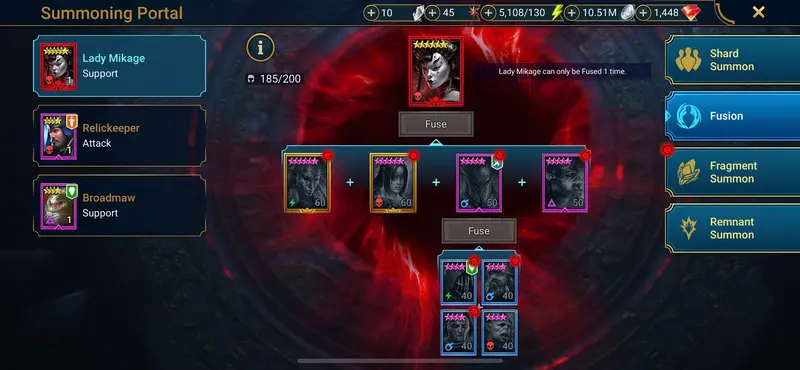2 Mythic (Mikage (waiting to unlock), anomaly ) - 31 Champions LV 60 - 96 Legend - 12 Voi