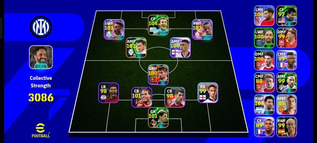 3086+ Team I Sane 103 (Biltz Curler) I 105 I Estevao 102 I Hazard 103 I Van Dijk 101 I Barcola 100 I Mbappe 101 I Only Konami I