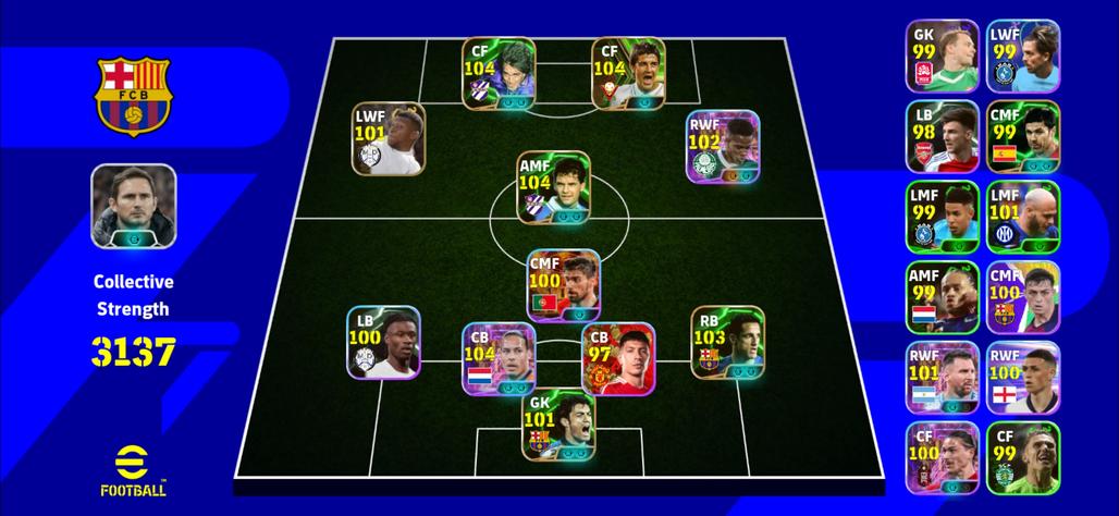 3137 Team I Van Dijk 104 I Estevao 102 I Baggio 105 I Villa 104 I Belletti 103 I Mbappe 101 I Xavi 103 I Only konami linked I