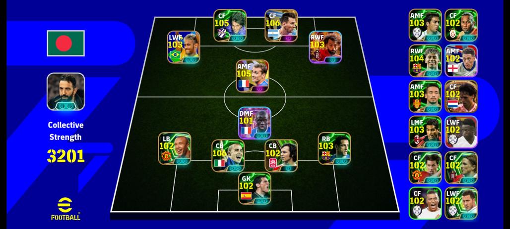 3202+ Team I Messi 106 I Salah 103 J Griezmann 105 I Cannavaro 106 I Neymar 103 I Batistuta 105 I Yamal 104 I Belletti 103 I Raul 104 I Nakata 103 I 11 Booster Managers I Only Konami linked I
