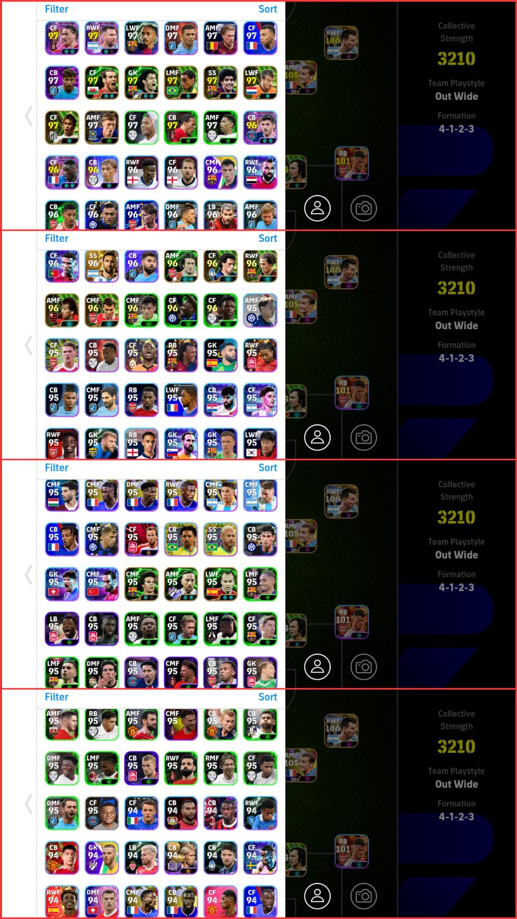 3210+ Team I Totti 105 I Messi 106 I CR7 103 I Pliro 105 I Cannvaro 106 I Griezmann 105 I Ronaldinho 103 I 6 Booster Managers I Only konami I