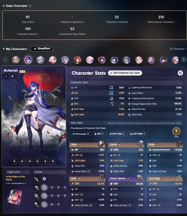 57 TL | NA | 8 + 2 Leg | Acheron | Bailu | Clara | Silver Wolf | Himeko | Yanqing | Aventurine | Dr. Ratio