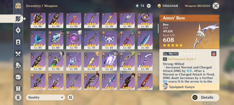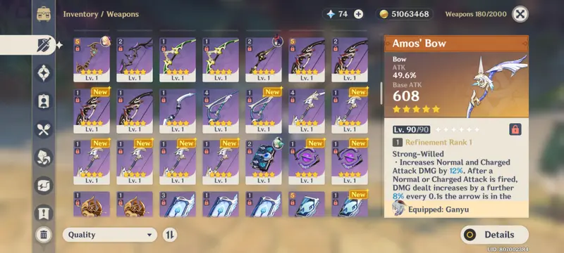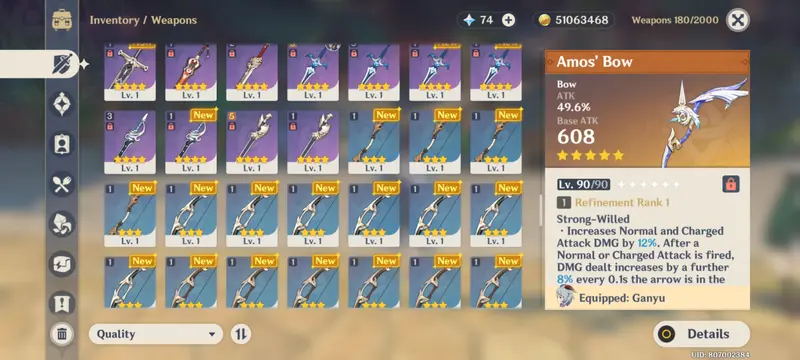 I started this game almost when it was launched. So this have soo many characters, including 16  5 start charactes and 17 5 start weapons. And also many equipments and items. Even items from so many events that you won't be able to obtain if you start now. This won't disappoint you. Guaranteed...