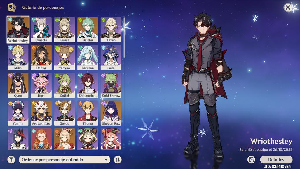 ⭐Character 5: Shogun Raiden (C0), Baizhu (C0), Wriothesley (C0), Yoimiya (C0), Zhongli (C0), Keching (C0), (Cyno (C0), Arataki Itto (C0), Dehya (C0), Diluc (C1), Qiqi (C1), Aloy (C0).