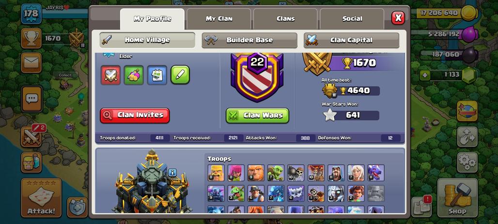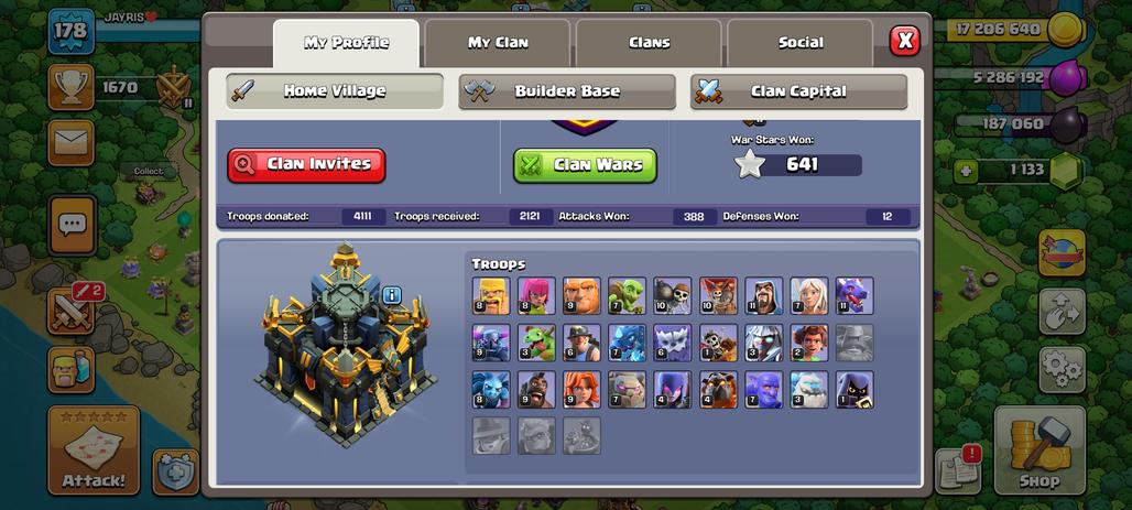 AWESOME TH 17 ACC | HIGH LVL LAB | WALLS ALMOST MAX | MAIN DEF MAX | NC AVAILABLE | 260 CWL MEDALS | BEST FOR DONATION
