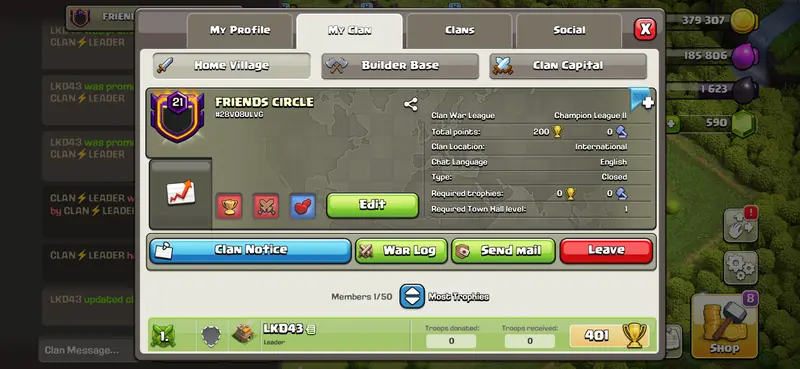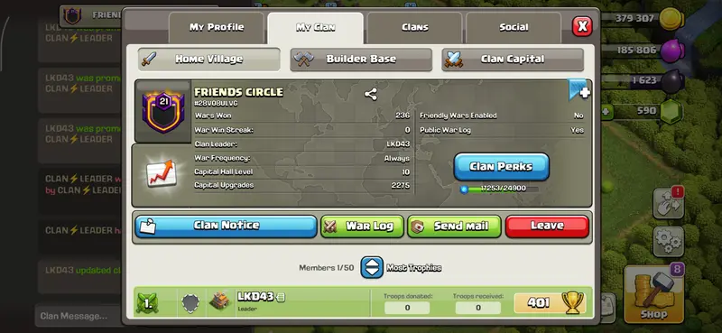 🌟BEST OFFER🌟BEST NAME [ FRIENDS CIRCLE ] CLAN LEVEL-21 | CLAN LEAGUE [ CHAMPION 2 ] WIN-236 | CAPITAL-10 [ 2275 DEF ]