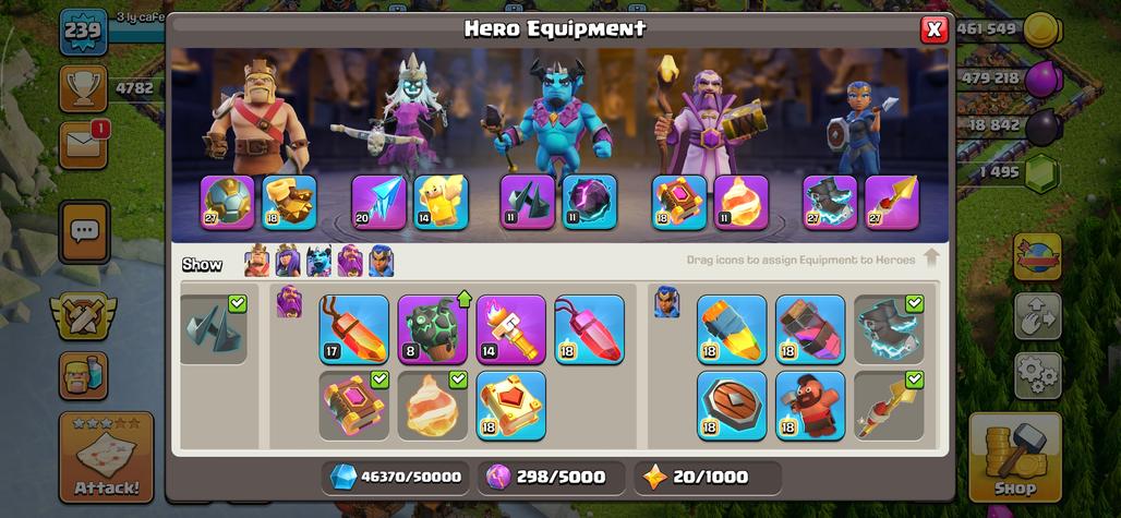 BEST OFFER TH 17 DEFENCE MAX | HERO [ 100-100-80-75-50 ] GG-MAX SB-MAX EB-MAX RS-MAX | 10 EPIC E.Q|-NC FREE-756 MEDEL