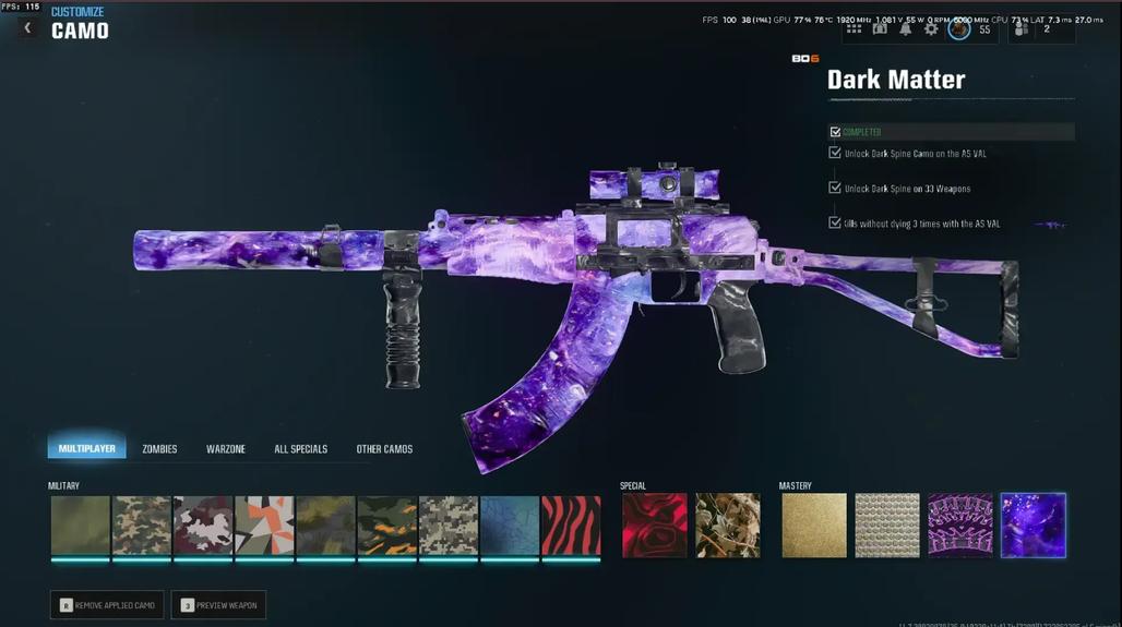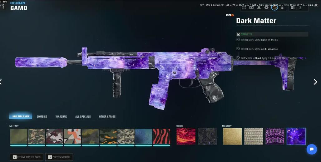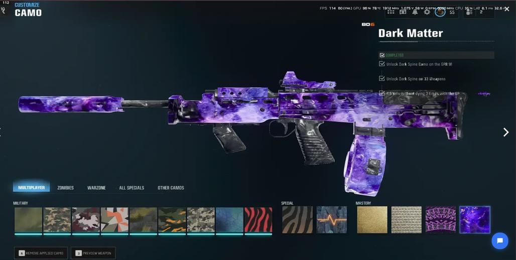 • 33x DARK MATTER Camos – Fully unlocked and ready to flex