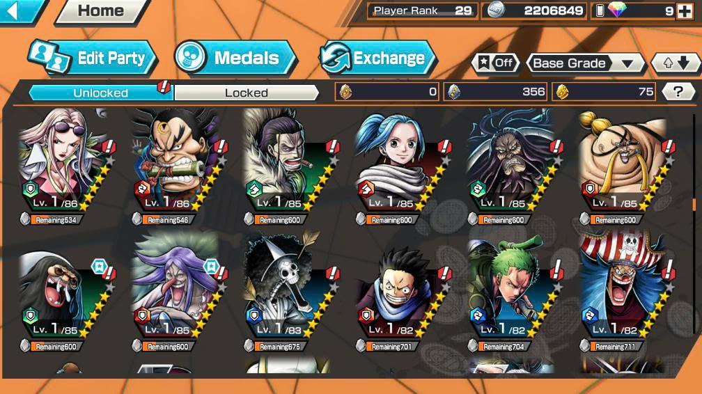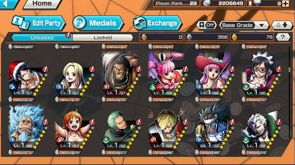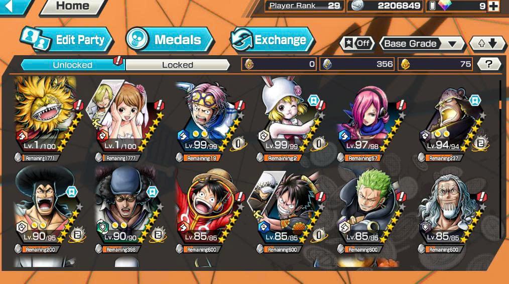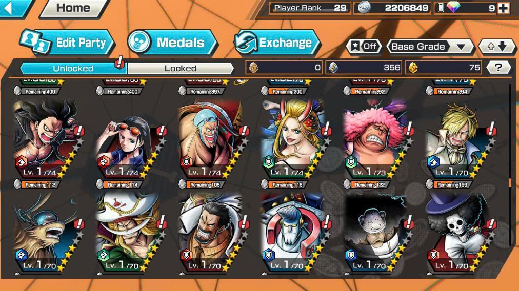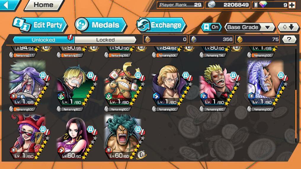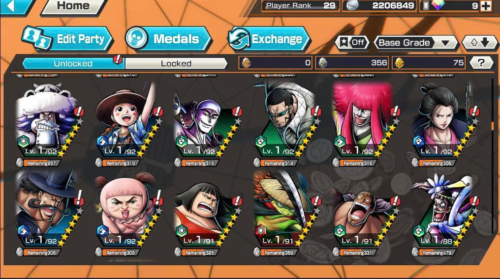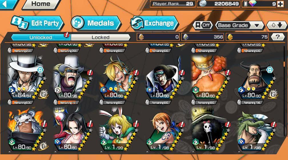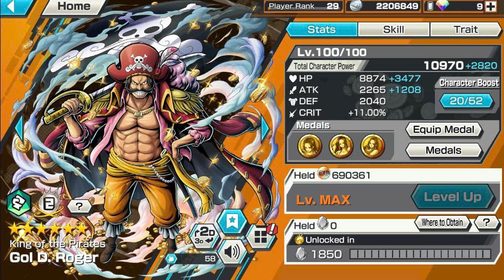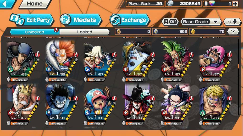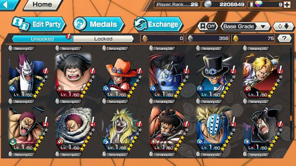 BR596-IOS+Android-4 Ex(Garp Max+Roger Max+Kuzan+Lucci)+Good Medal+Support 153%+Koby Max+Kaku Max+Carrot+Oden v2+Pacifista+Bluneo+Aramaki v2+Sanji+Donflamingo+Egghead Luffy