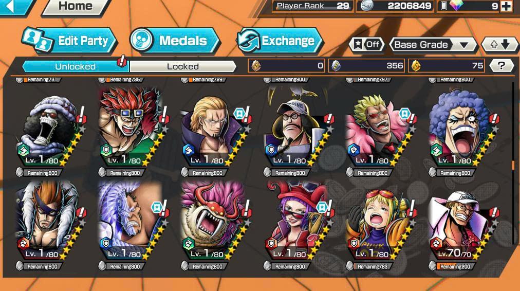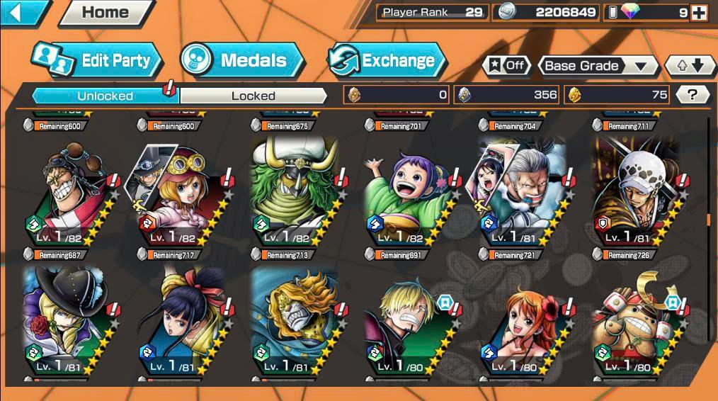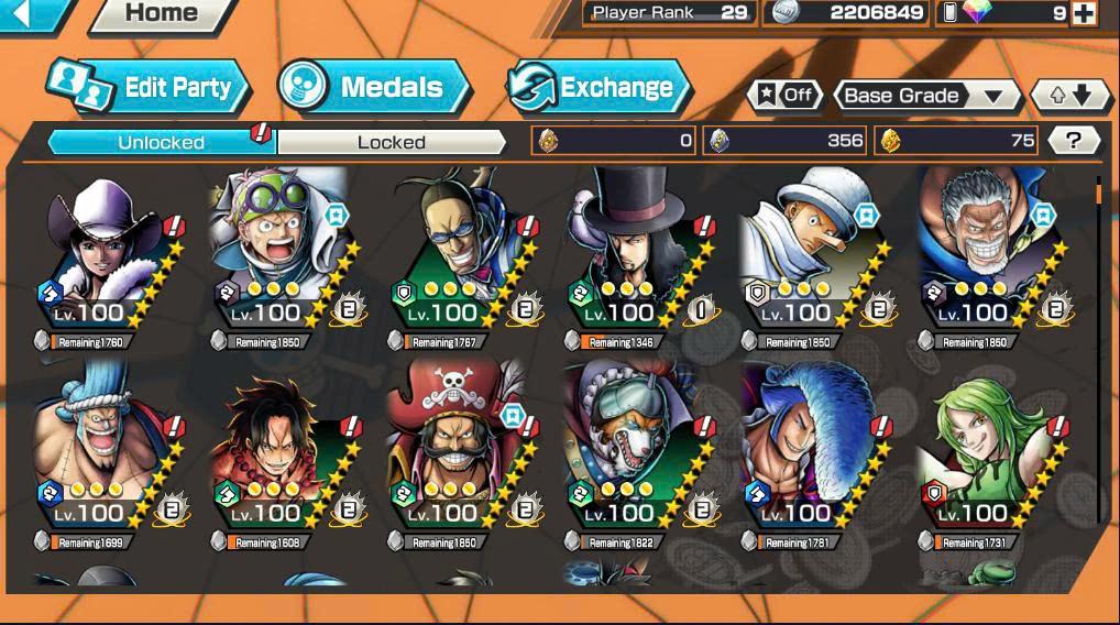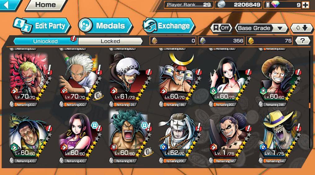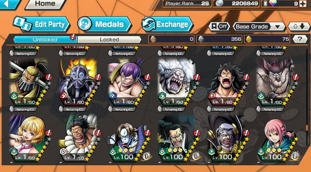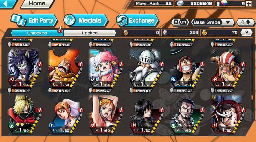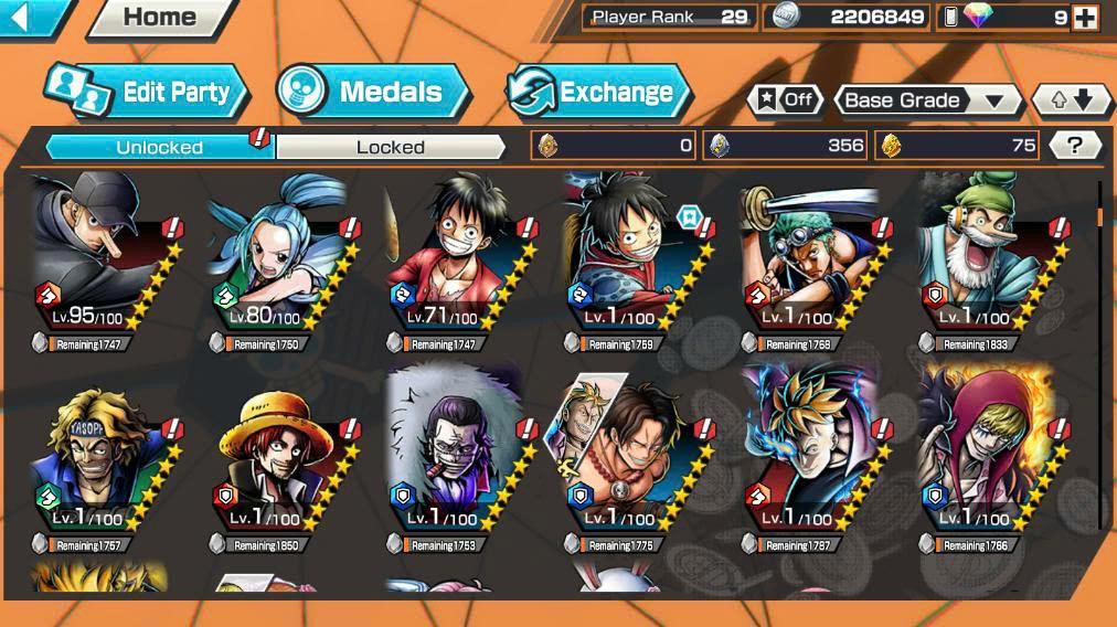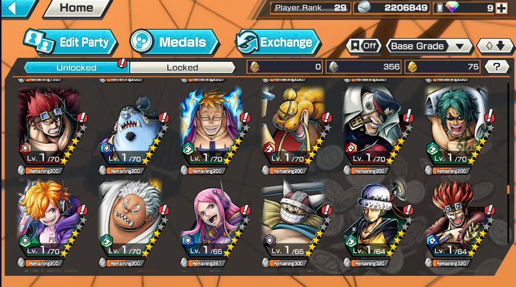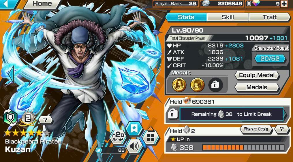 BR596-IOS+Android-4 Ex(Garp Max+Roger Max+Kuzan+Lucci)+Good Medal+Support 153%+Koby Max+Kaku Max+Carrot+Oden v2+Pacifista+Bluneo+Aramaki v2+Sanji+Donflamingo+Egghead Luffy