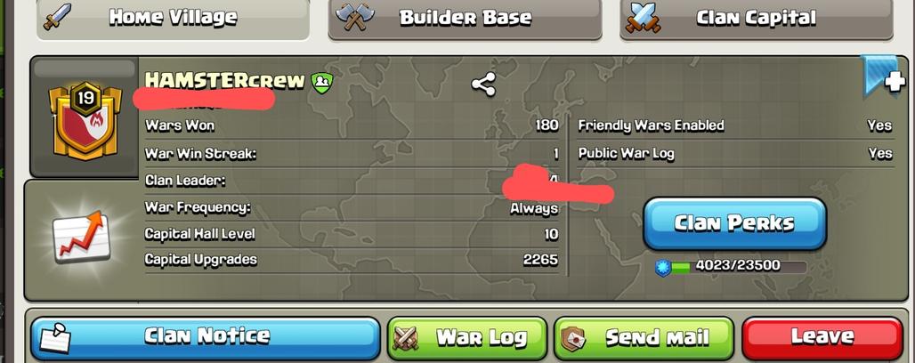 CAPITAL HALL 10 | Clan Level 19 | Name: HAMSTERcrew | Awesome Name | MAX CAPITAL ARMY | Wins 180 Losses 86 | Crystal 3