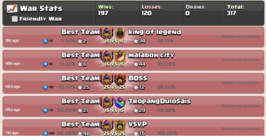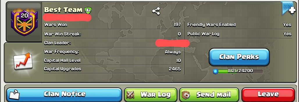 CAPITAL HALL 10 | Level 20.4 | Name : Best Team | Max Capital Army except 2 troops | Wins 197 Losses 120 | Crystal 2
