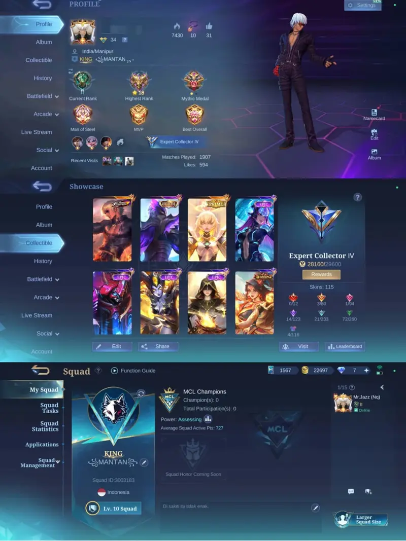 CEL LVL 75 | 115 SKINS | 72 HEROES | EPIC RECALL & ELIMINATION | GUSION COLLECTOR - GUSION KOF - BETRIX PRIME -