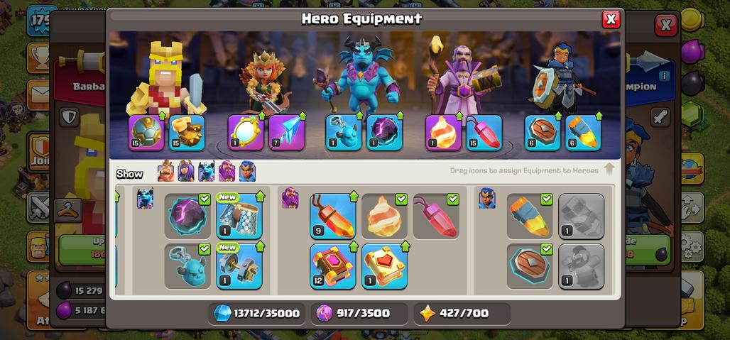 CHEAPEST [] FULL MAX TH 13 [] HEROES:-74-62-41-45-20 [] 1727 CWL MEDALS [] 1600 WWS [] EQUIPMENTS [] 179xp
