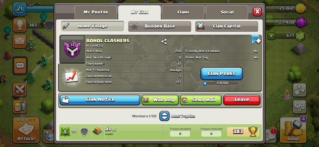 CLAN LEVEL: 13 | CLAN NAME- BOHOL CLASHERS | LEAGUE:GOLD 1 | 258 WAR WIN | CHEAP PRICE | INSTANT DELIVERY