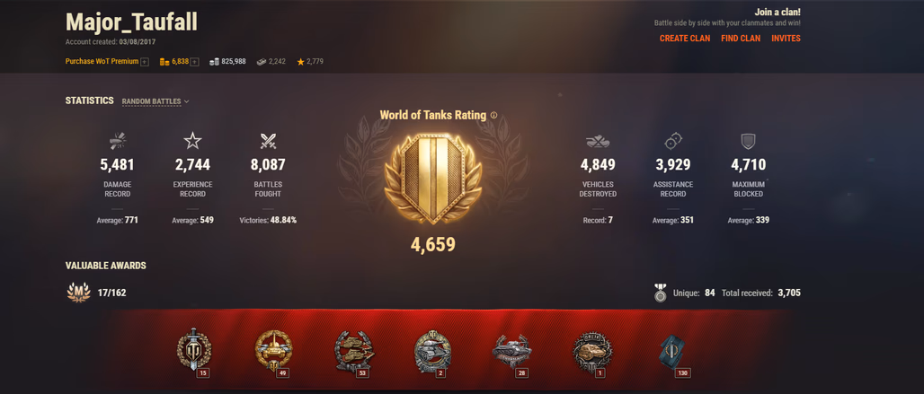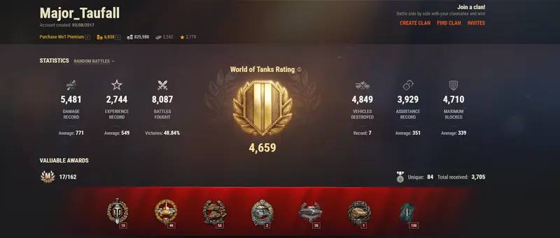 Here you can see the account statistics: worldoftanks. eu/community/accounts/549211611-Major_Taufall