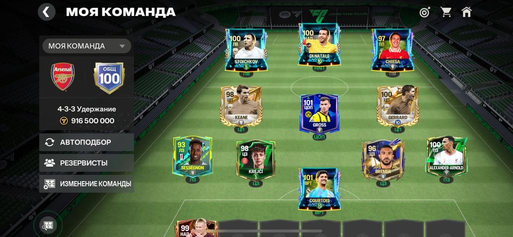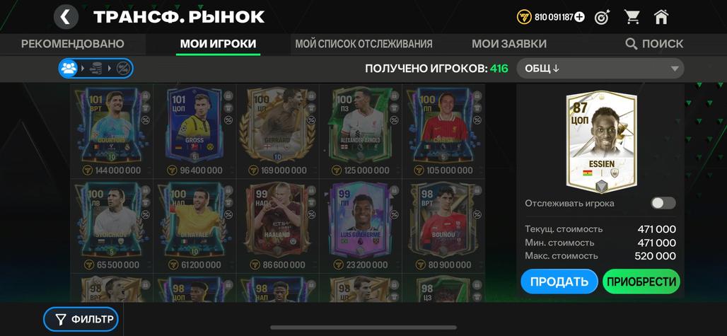 FCM556 //Rating 100 Squad price (kk) 916 Coins on balance (kk) 810+100 OVR