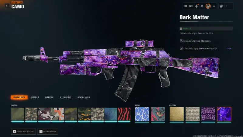✔️33x DARK MATTER Camos UNLOCKED