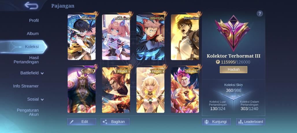 MM259|Lv119|360Skin|EXALTEDCOLLECTORIII|2ASPIRANTS|JJK Itadori|AOT Eren|4PRIME|2COLLECTOR|8ZODIAC|17EPIC