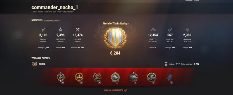 [NA] 12 TIER X | 43 PREMIUM TANKS | TOTAL TANKS 70 | 5946 GOLD | 7577 (49%) WINS | 4.059.203 CREDITS | SEE DESCRIPTION