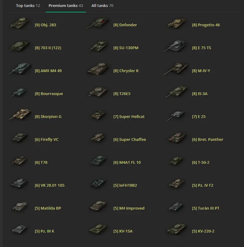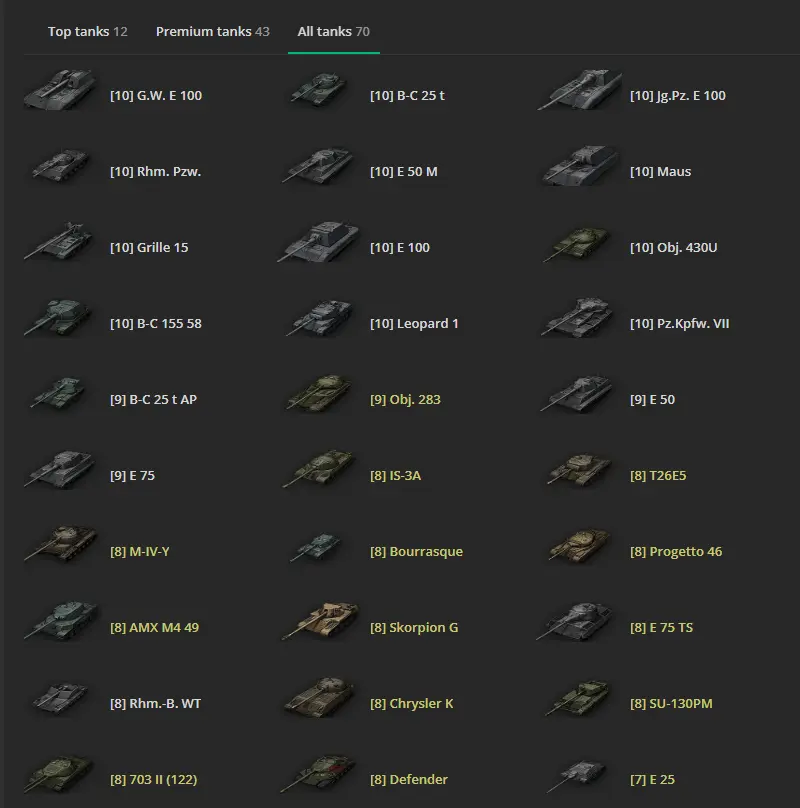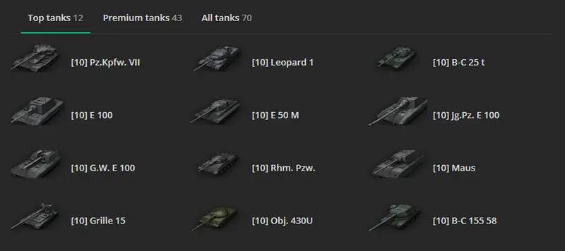 2. Tier X/ 12  Top tanks