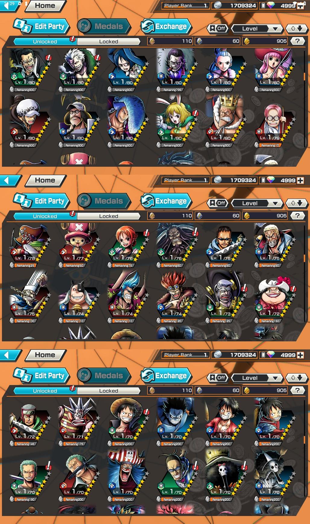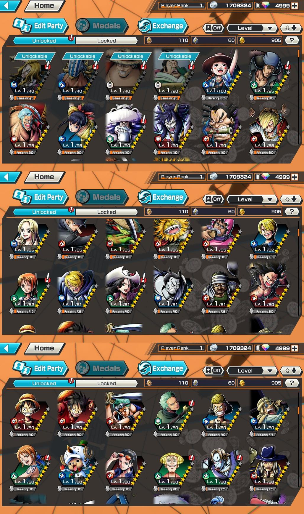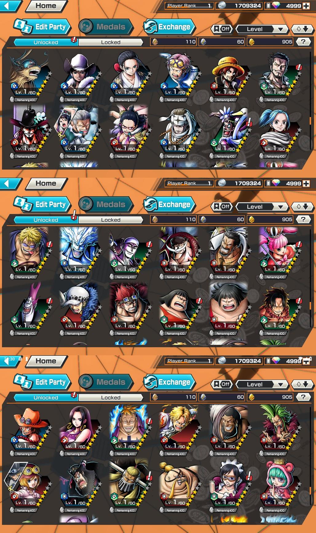 OP277 // Global // Android // 5300+ Diamonds // 905+ Gold Fragments // 1+ 6 Stars // 43+ 5 Stars Characters