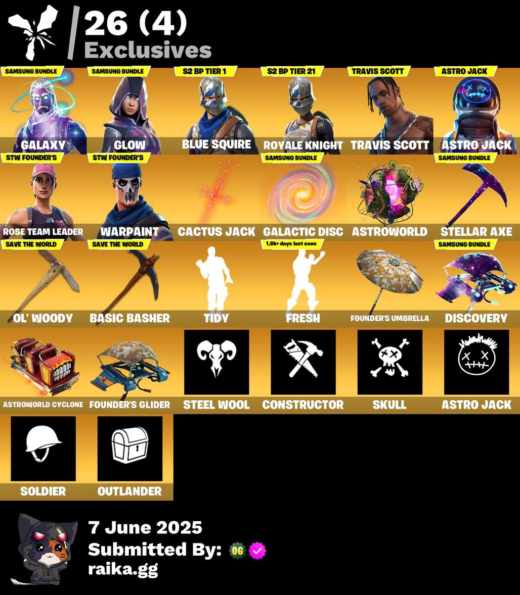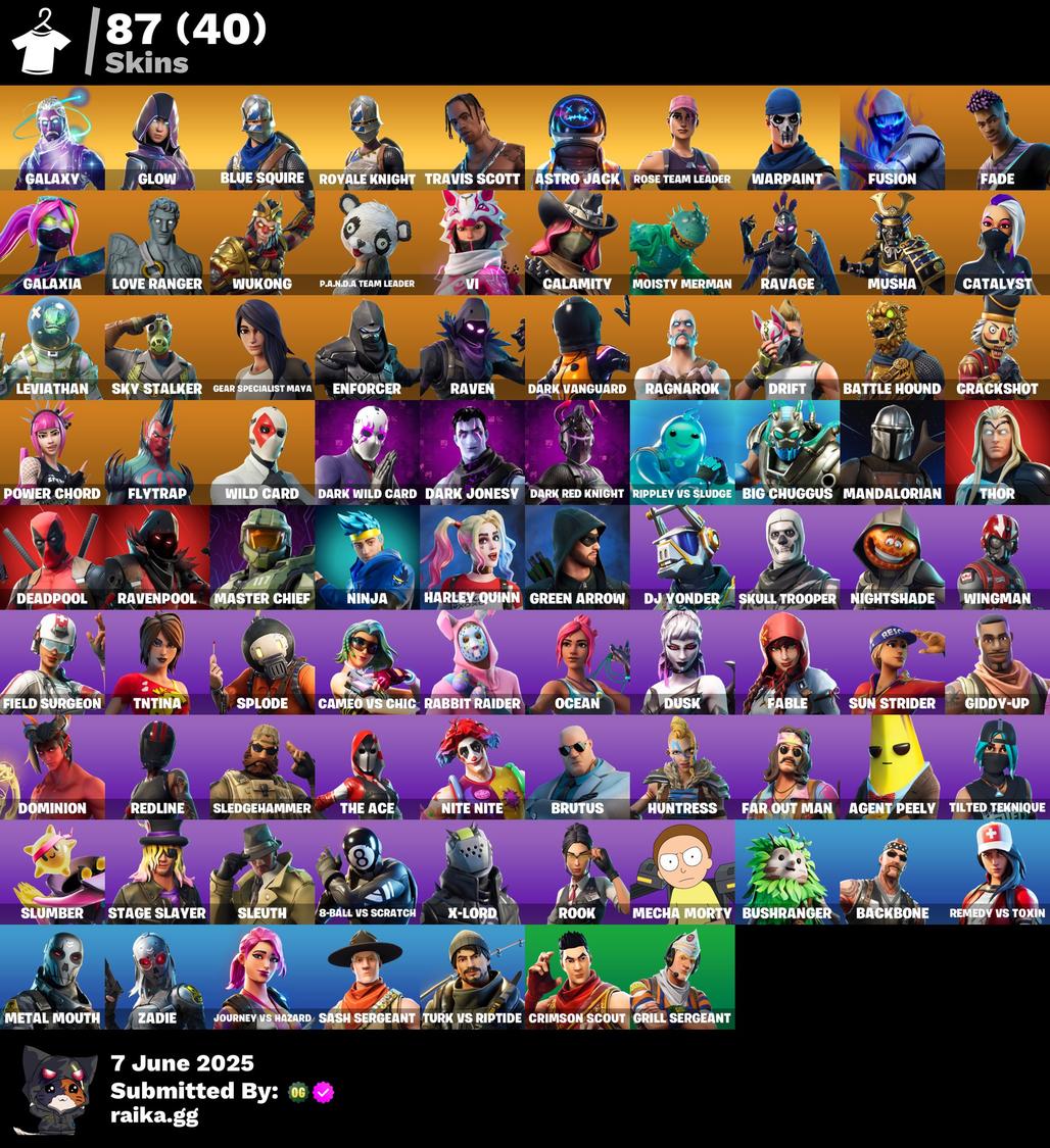 PC PSN Xbox Nintendo 87 skins | OG STW | Galaxy | Travis Scott | Glow | Blue Squire | Royale Knight | Travis Scott |