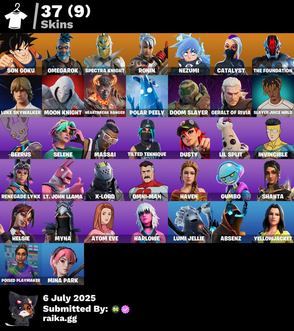 [PC|XBOX|PS4-5] | SON GOKU | 37 Skins | Spectra Knight|Polar Peely|Harlowe|Poised Playmaker|YellowJack|Myna|Massai