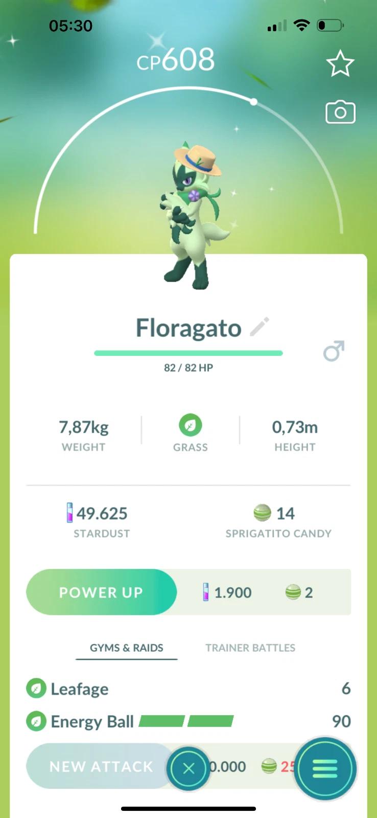 • Shiny Floragato in your pokedex and 20k stardust ready