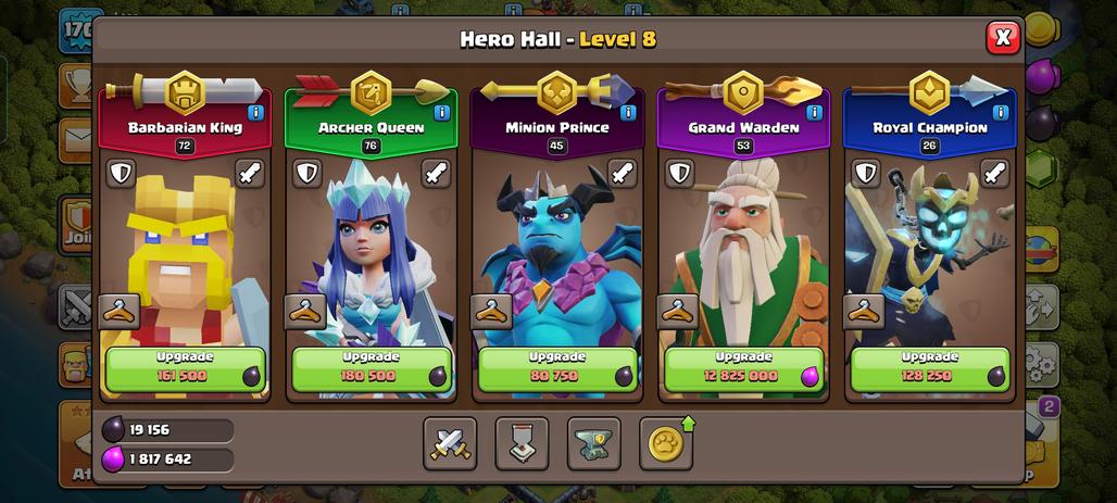 TH 14 NEAR MAX | AQ 76 BK 72 MP 45 GW 53 RC 26 | 8 HERO SKIN | NAME CHANGE FREE | 3.3K GEMS