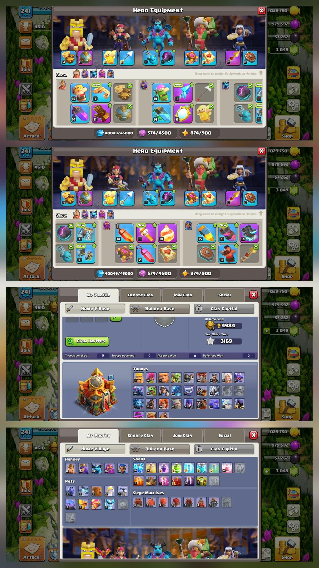 TH 16 Near Max [ USA Local ] Heroes 81-85-60-55-31 | Name Change Yes | War Star - 3169 | 8x Epic Eqpmnt | Instant