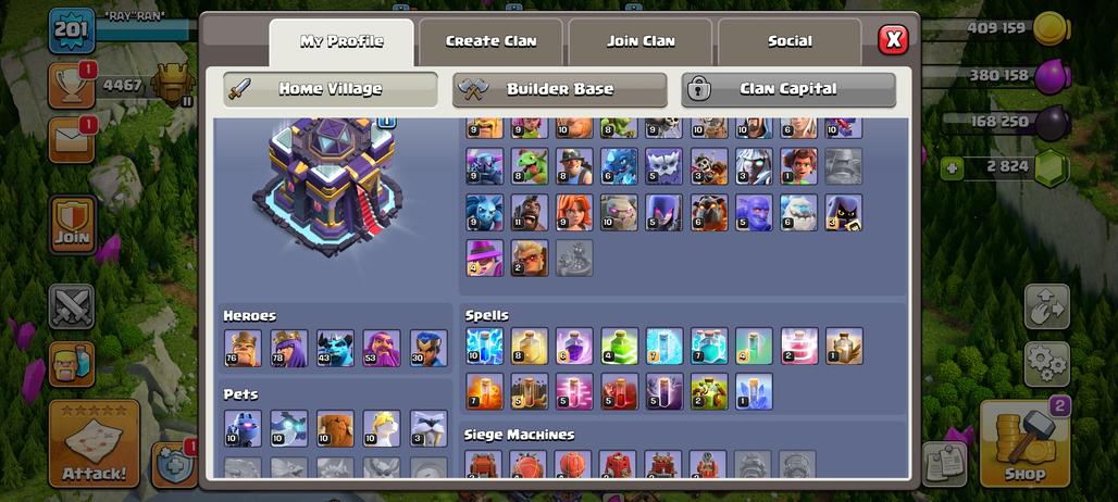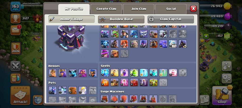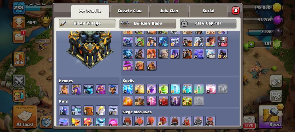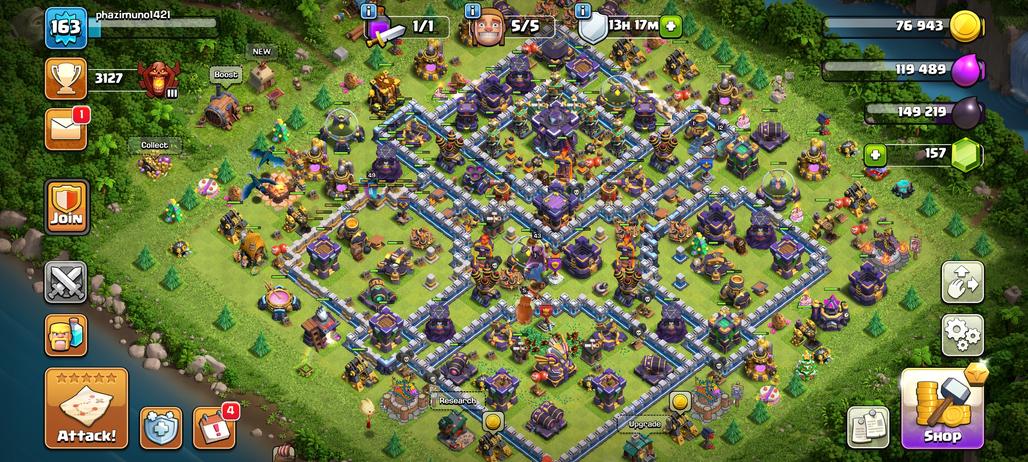 TH17 Almost Max | 4 | 200 War Stars | Premium Scenery | 9 Epic Equipments Loaded Heroes 95-96-67-... ! MKG01290