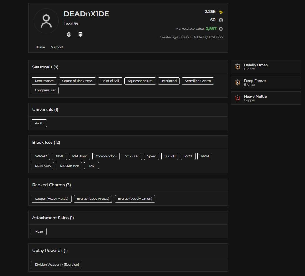 [UPLAY] 99 LVL - 12X BLACK ICES - 1X UNIVERSALS - 7X SEASONALS - 5X LEGENDARY - 62 OPERATORS - 2K RENOWN FA