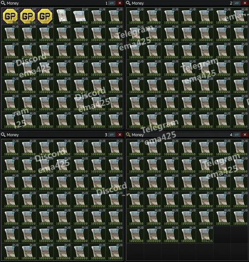 • Money & Valuables: Full money case with 100k+ rub stacks, GP Coins