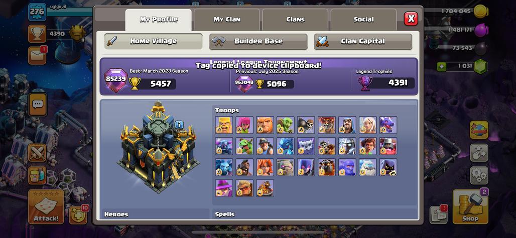XP 276 TH 17 FULL MAX | 5X HEROES MAX | LAB MAXED | 6 EPIC MAX 7 EPIC LVL 23 | NC FREE | 1X RARE SCENERY | BEST DEAL