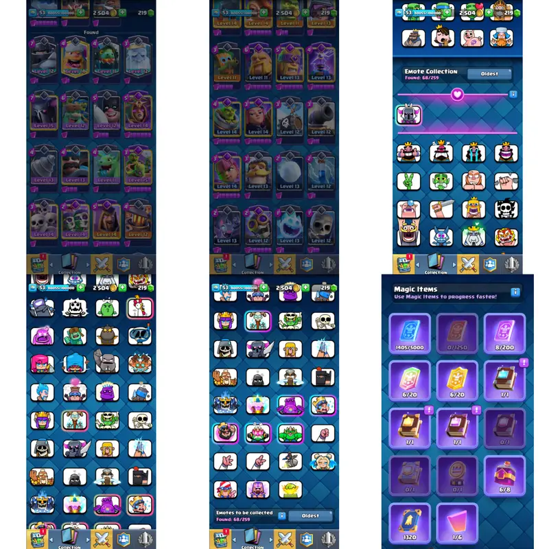 🔥XP-53🔥KT-14! 26X MAX CARDS[5X ELITES]! EVO-13! EMOTES-68 MANY EXCLUSIVE! 9600 TROPHIES! FAST DELIVERY